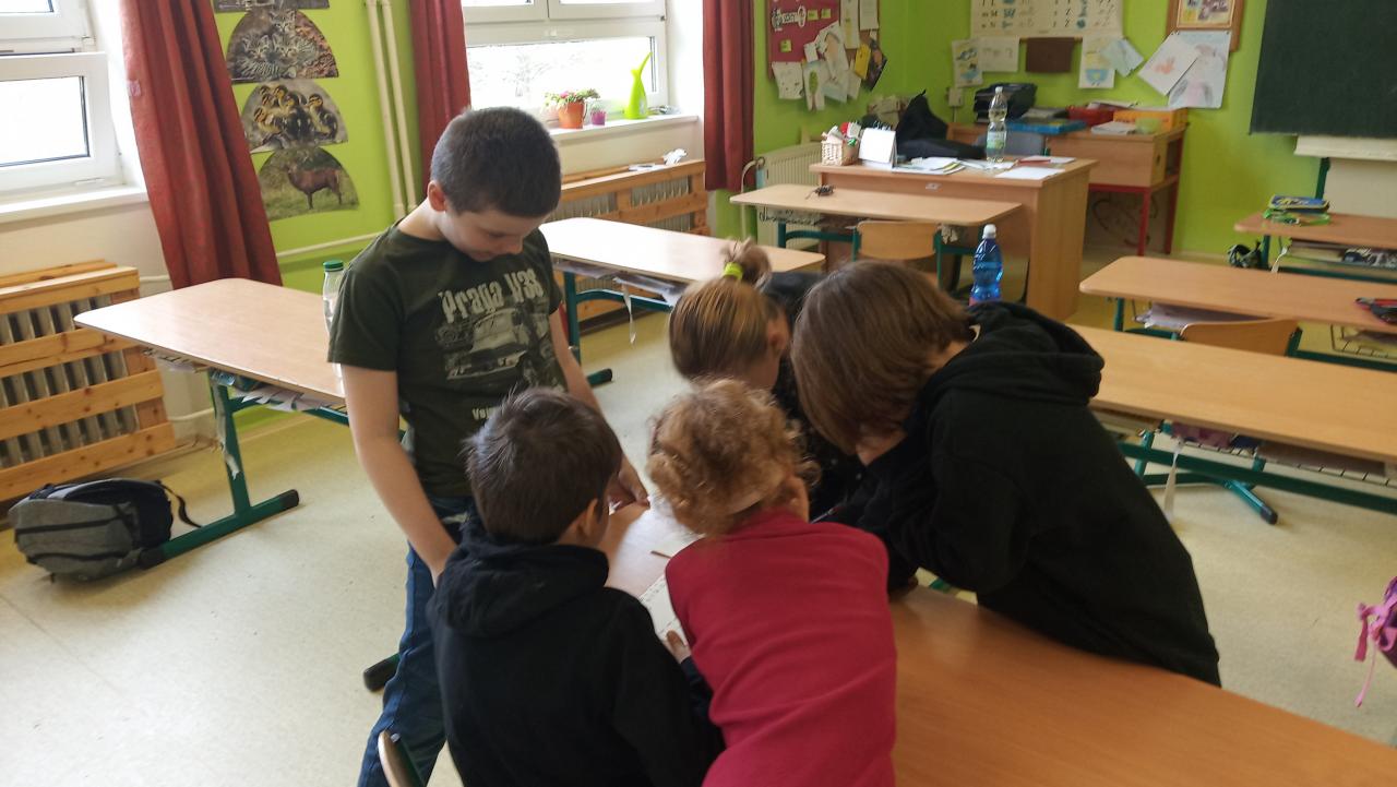 Děti prvního stupně spolupracovaly ve skupinách napříč všemi ročníky. Luštily šifry, přes