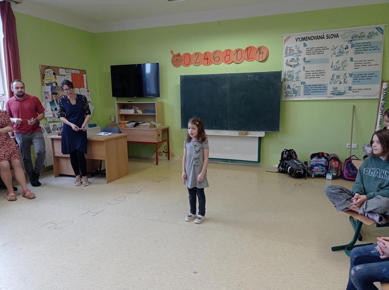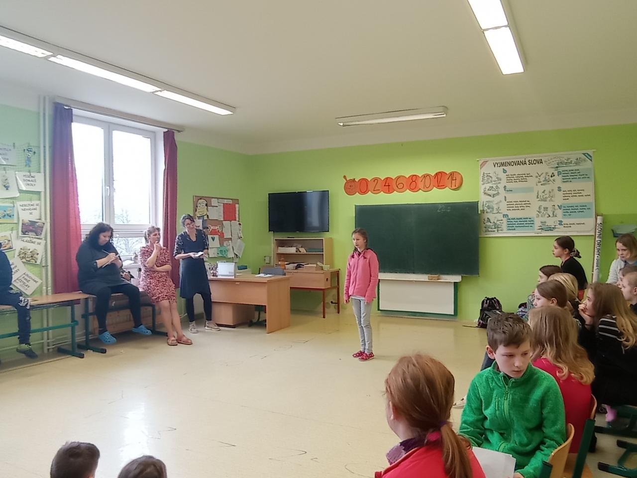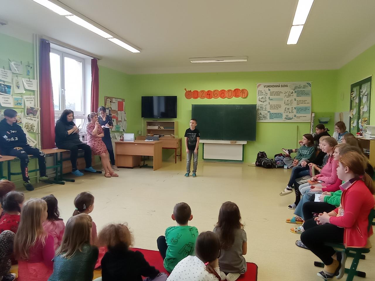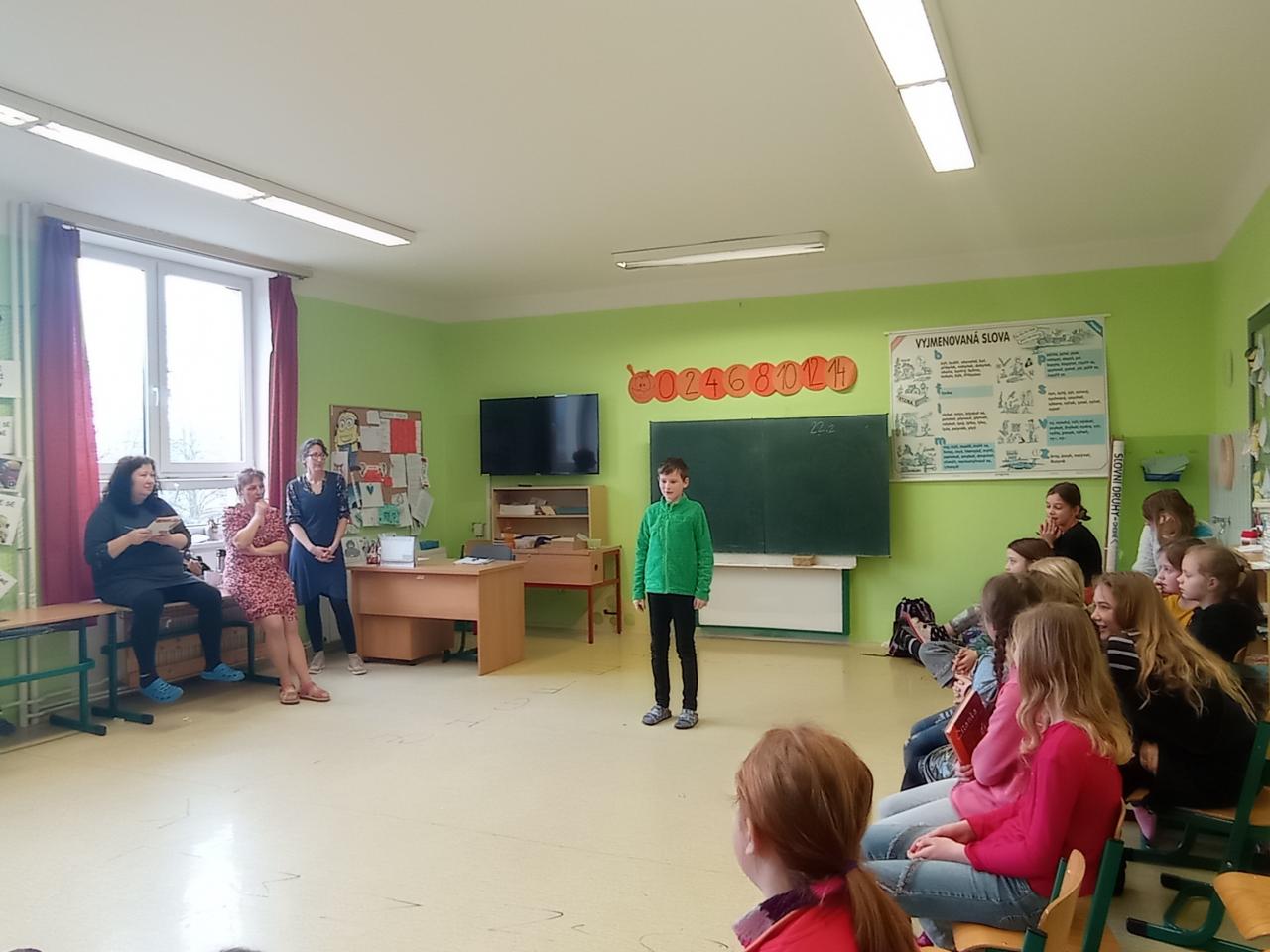 Nejprve proběhla třídní kola recitační soutěže, následovalo to školní. Svého úkolu se zhostili výborně všichni ti, kteří měli odvahu a vystoupili před větším publikem. Mile nás překvapil zájem z řad posluchačů, kteří se přihlásili a recitovali svoji básničku. Proto byla letošní účast velmi hojná. V kategorii 1. třída zvítězil Miloslav Sedlačík. Kategorie 2. a 3. třídy patřila Agátě Jarošové. V kategorii 4. a 5. třídy to byl Vojtěch Masařík. Následovala kategorie 6. a 7 třídy, kde vyhrála Tereza Zmrzlá a poslední kategorii tvořila 8. a 9. třída, na 1. příčce se umístila Adéla Vaculíková.