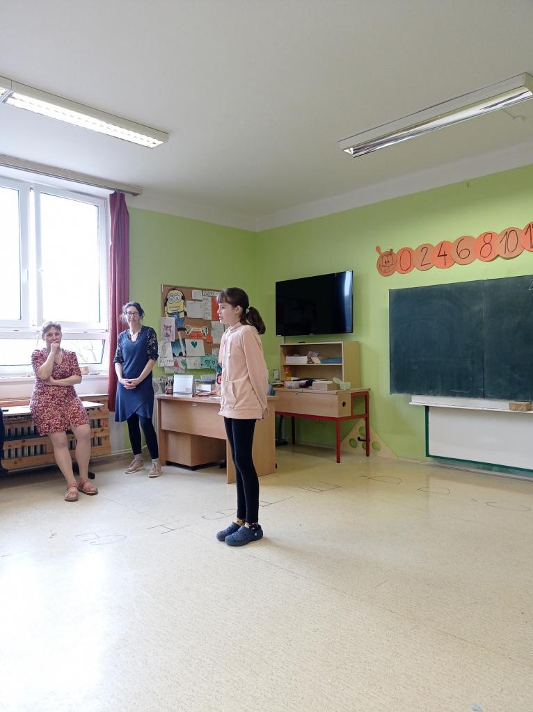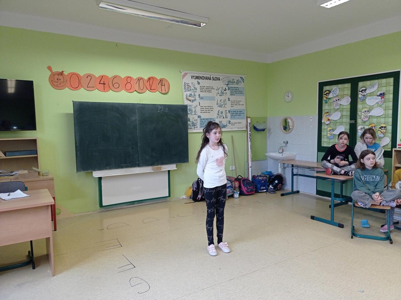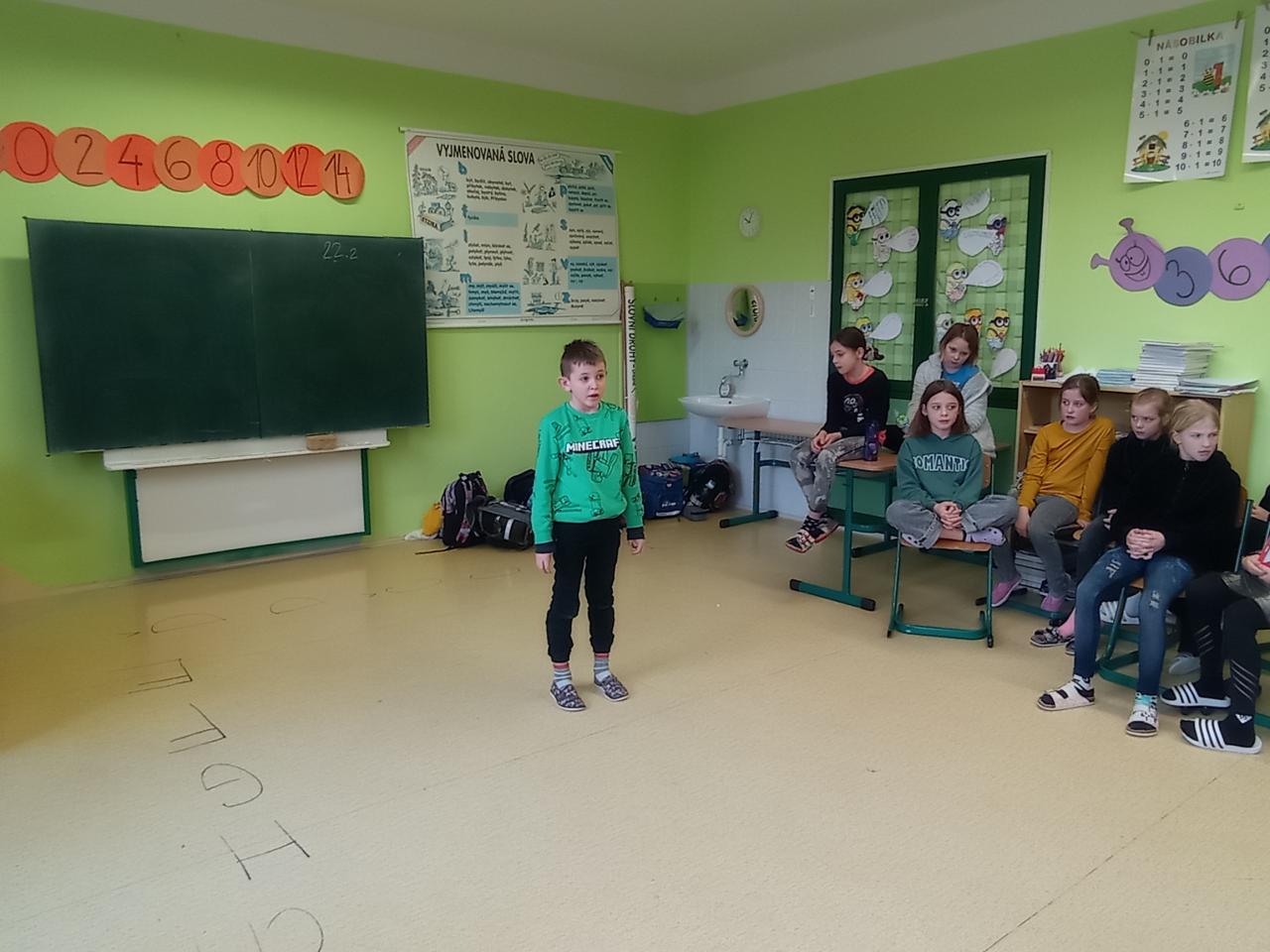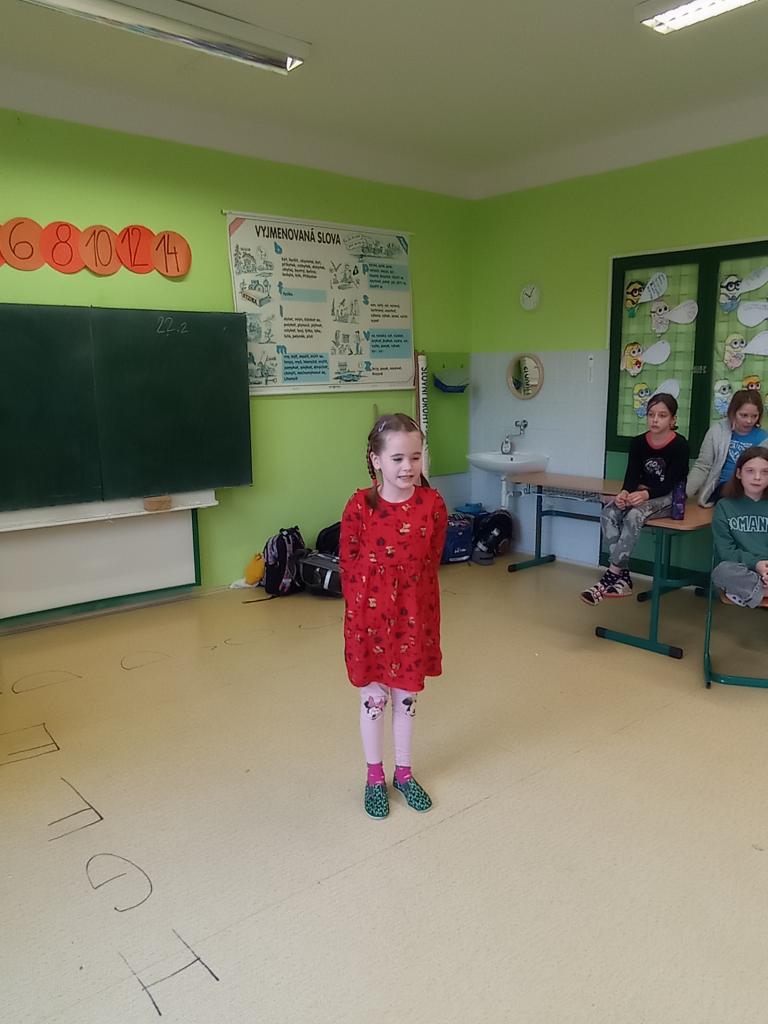 Nejprve proběhla třídní kola recitační soutěže, následovalo to školní. Svého úkolu se zhostili výborně všichni ti, kteří měli odvahu a vystoupili před větším publikem. Mile nás překvapil zájem z řad posluchačů, kteří se přihlásili a recitovali svoji básničku. Proto byla letošní účast velmi hojná. V kategorii 1. třída zvítězil Miloslav Sedlačík. Kategorie 2. a 3. třídy patřila Agátě Jarošové. V kategorii 4. a 5. třídy to byl Vojtěch Masařík. Následovala kategorie 6. a 7 třídy, kde vyhrála Tereza Zmrzlá a poslední kategorii tvořila 8. a 9. třída, na 1. příčce se umístila Adéla Vaculíková.