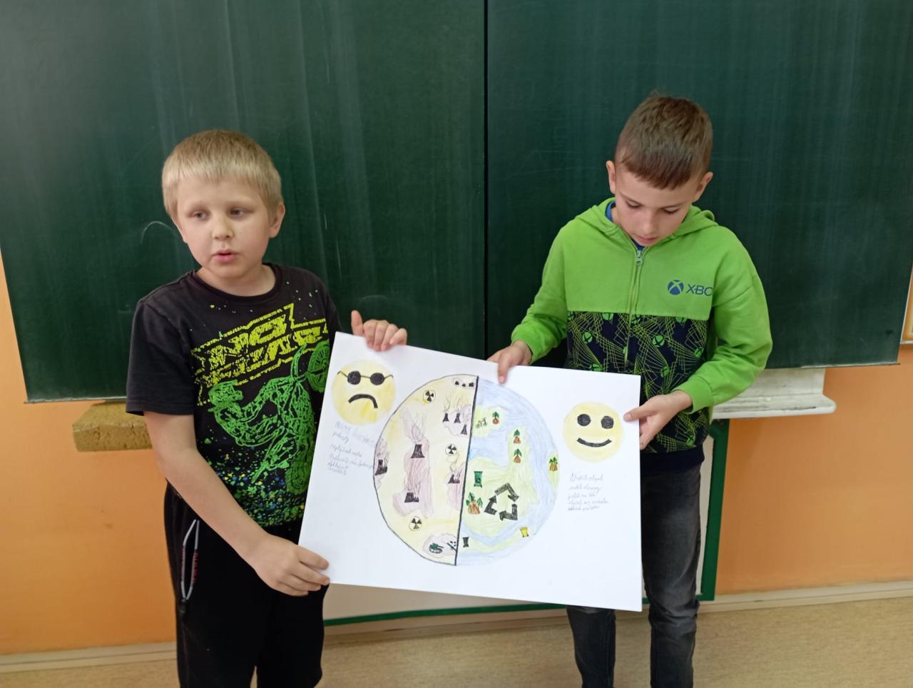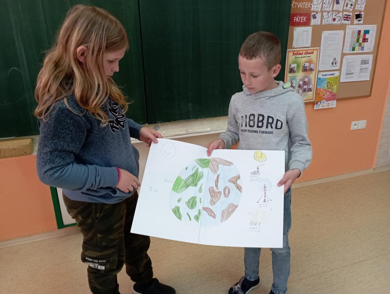 Svátek Země jsme oslavili zjišťováním, co můžeme udělat pro naši planetu. Co je pro ni dobré, co je špatné. Žáci pracovali ve skupinkách.
