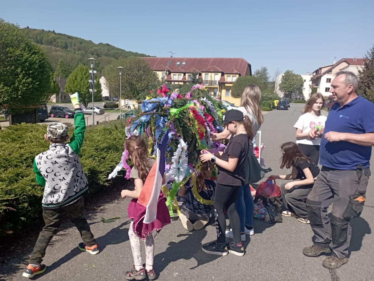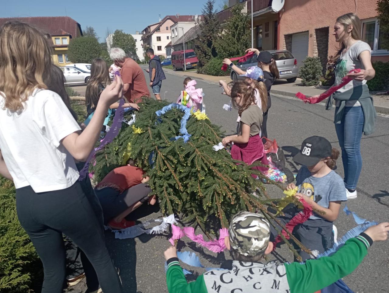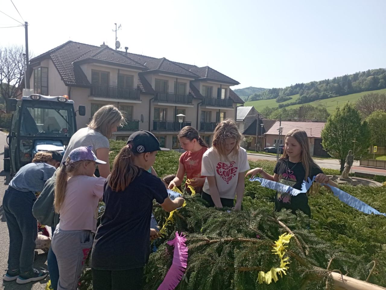 Dnešní den byl jako stvořený k prvomájové tradici - ke stavění máje. A aby se ten náš na Hrozenkově zaskvěl všemi barvami a byl ten nejkrásnější, vrhli se na něho žáci druhého, třetího a pátého ročníku a nazdobili ho opravdu poctivě.