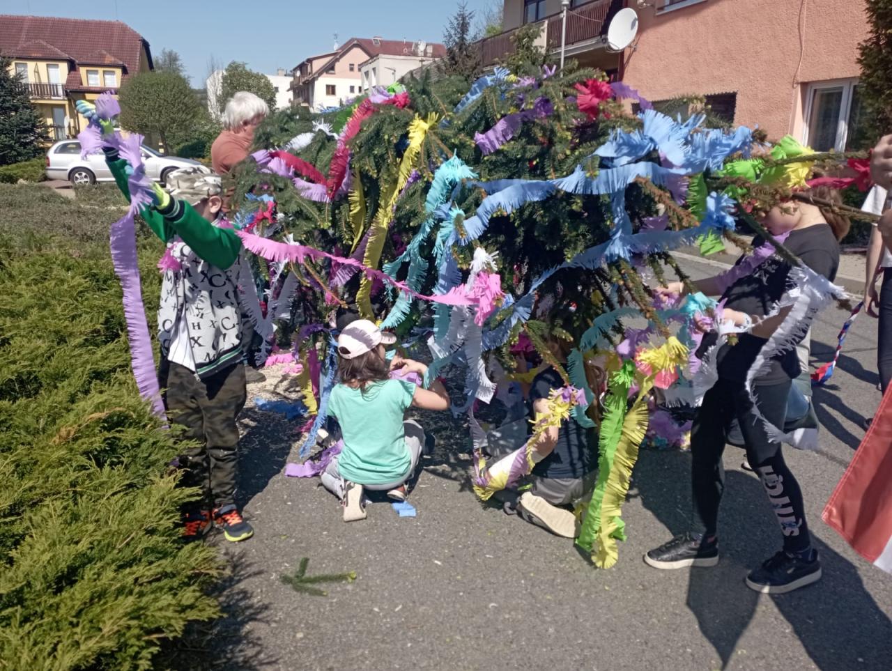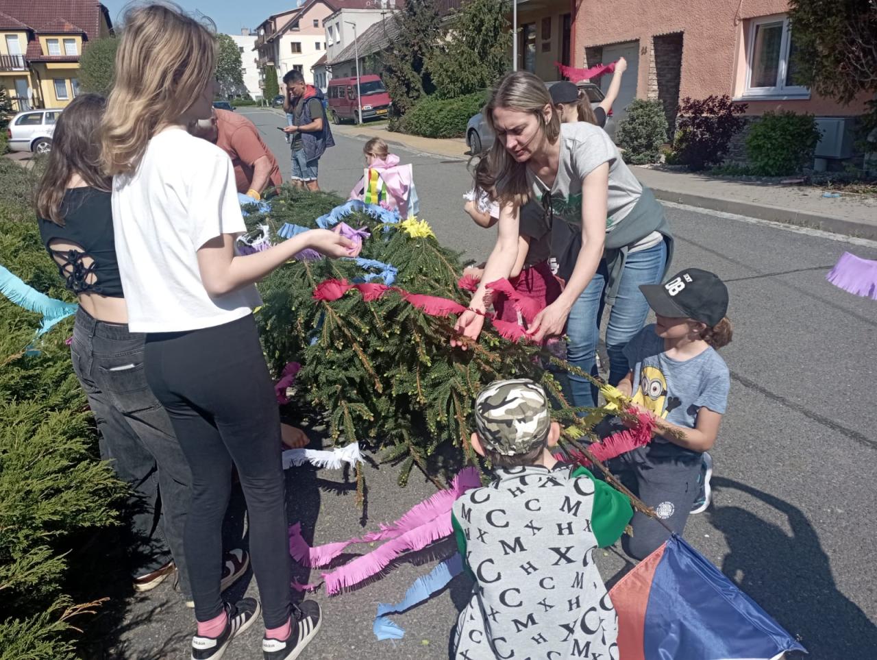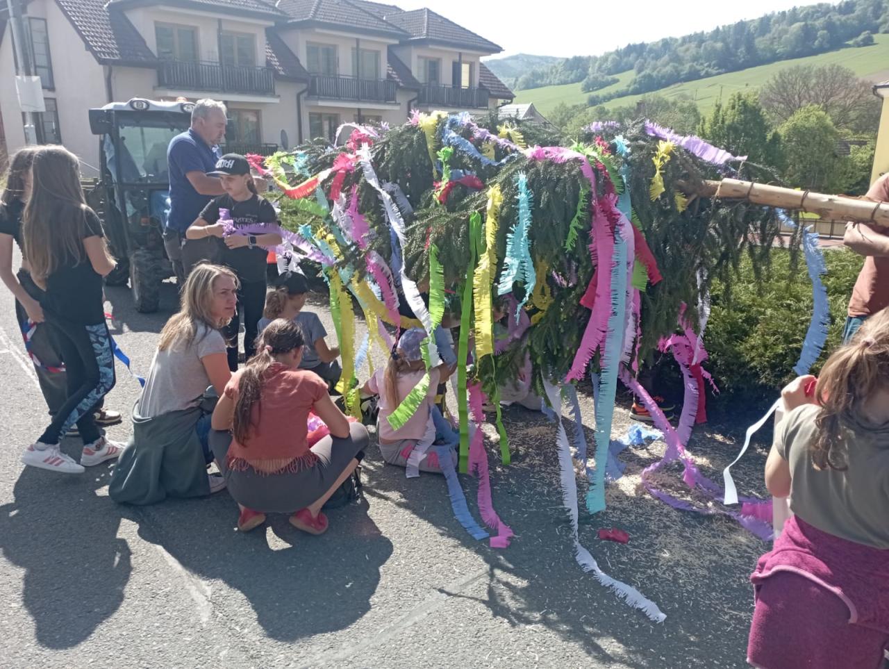 U máje, vedle něho, před ním i pod ním se ozývalo veselé povykování, švitoření a juchání dětí. Výsledkem je nádherný máj, který bude hrdou ozdobou Hrozenkova.