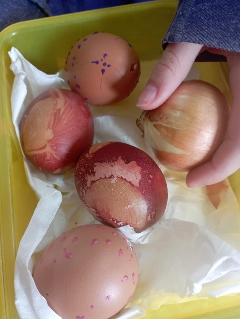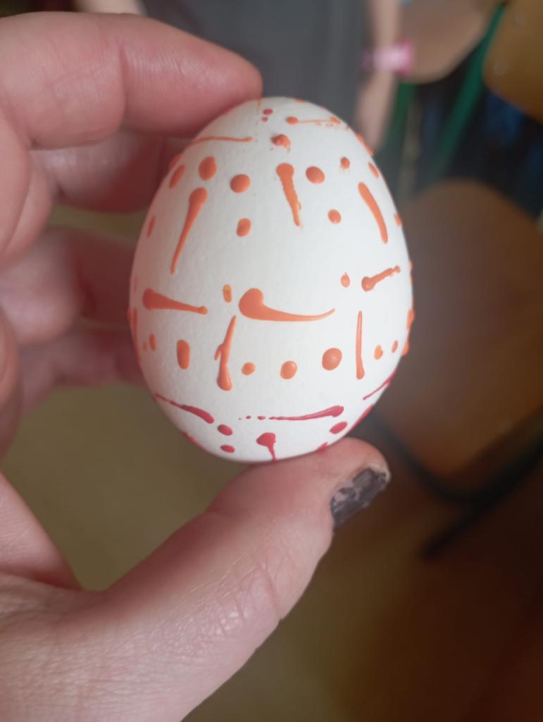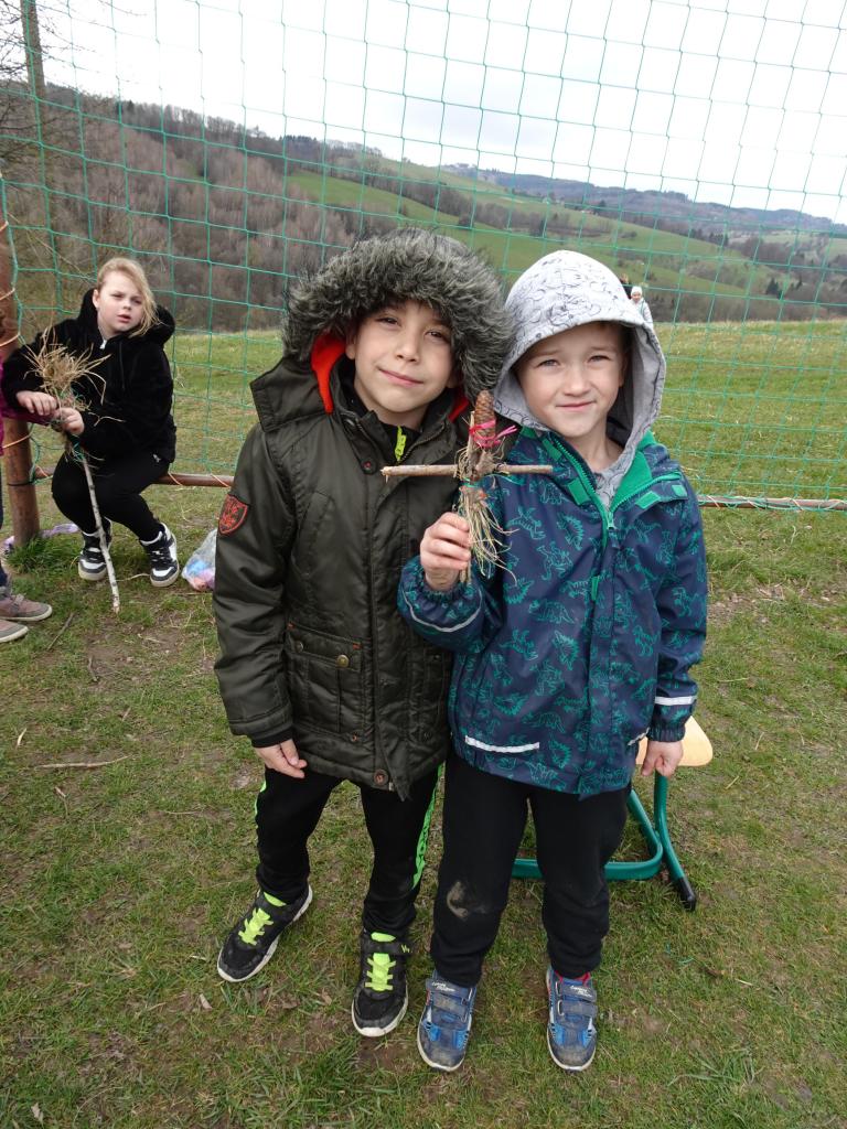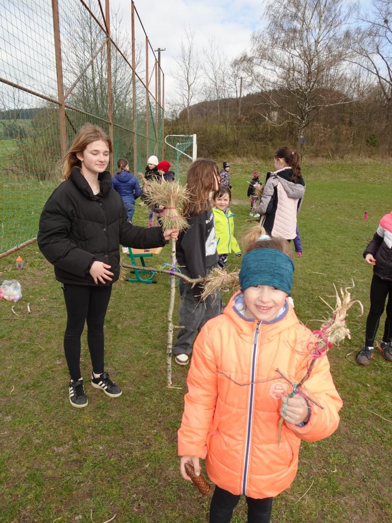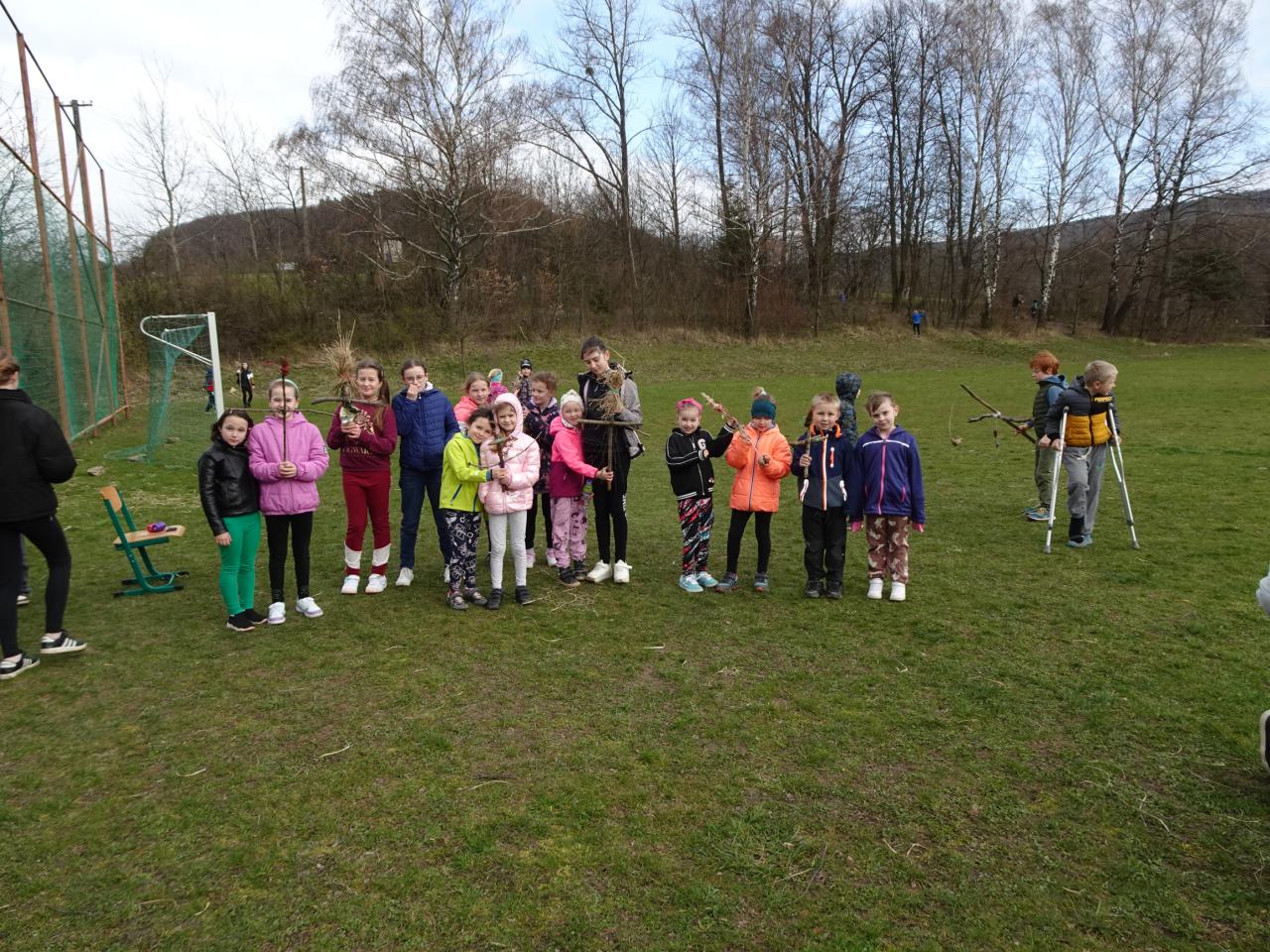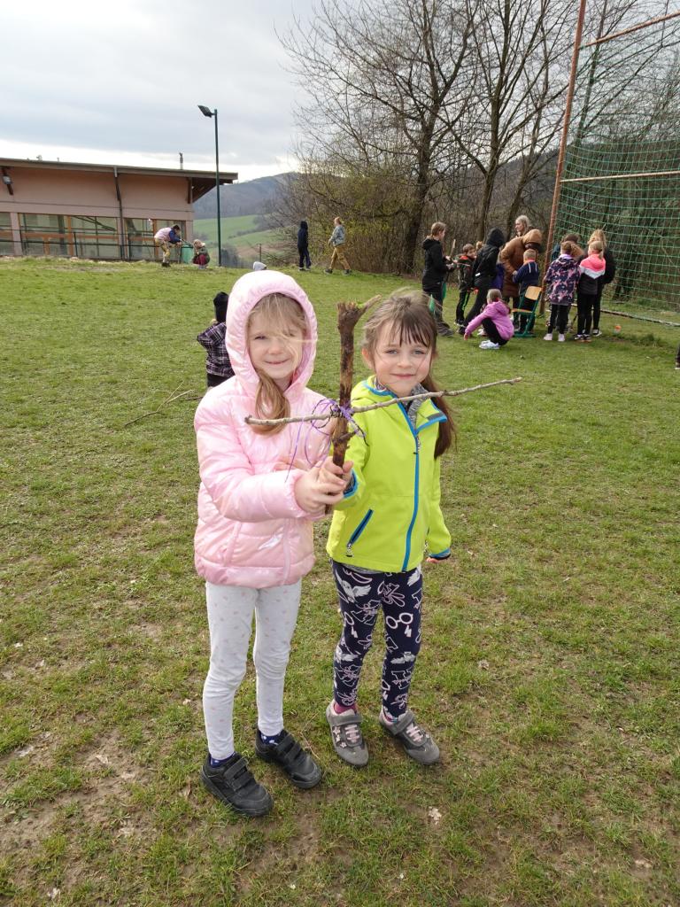 Chtěli bychom už zimu poslat pryč, a proto jsme si dnes vyrobili morany, jednu z nich jsme uložili k zimnímu spánku na hřišti, zbytek máme zatím ještě kolem školy. Hledali jsme poschovávaná čokoládová vajíčka. Druhá a třetí třída upekla sušenky a buchtu. Dívky pak zdobily vajíčka voskem a cibulovými slupkami a chlapci si pletli pomlázku.