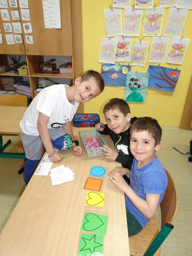 Budoucím školákům se ve škole zalíbilo a opět nás v první třídě navštívili. Tentokráte se jim ale věnovali prvňáci a provedli je několika školními úkoly.