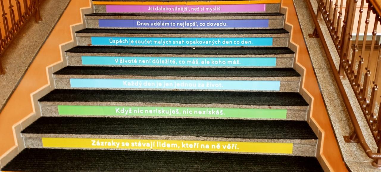 Naši školu zdobí od začátku prosince nové polepy na schodištích i na chodbách