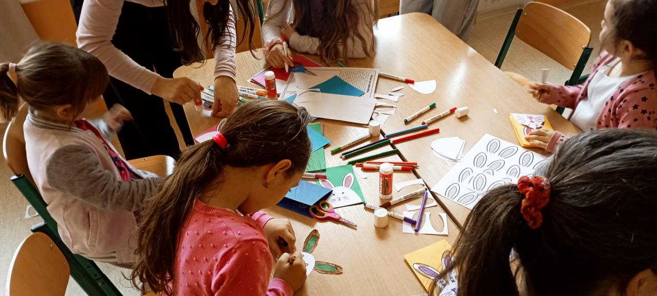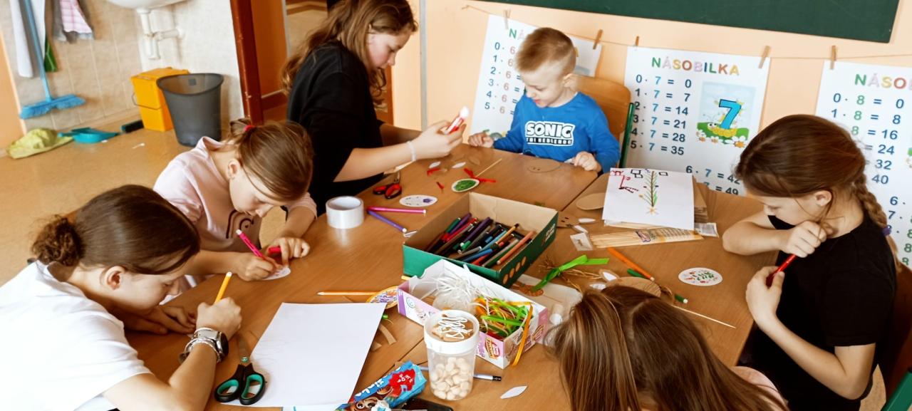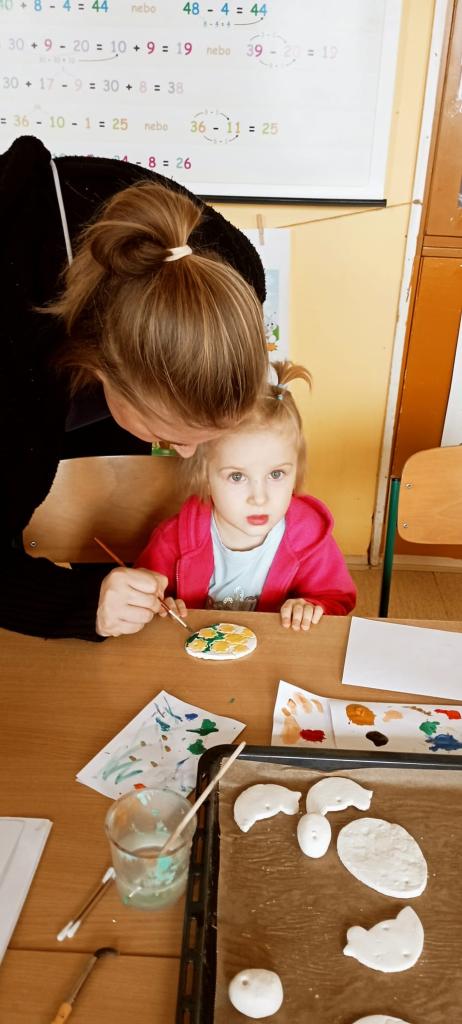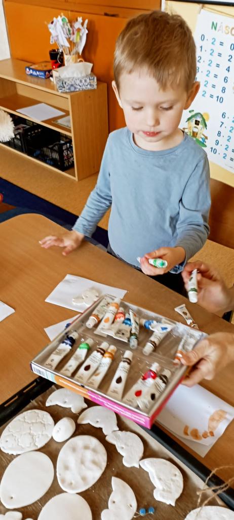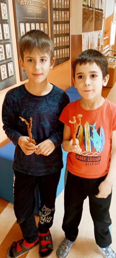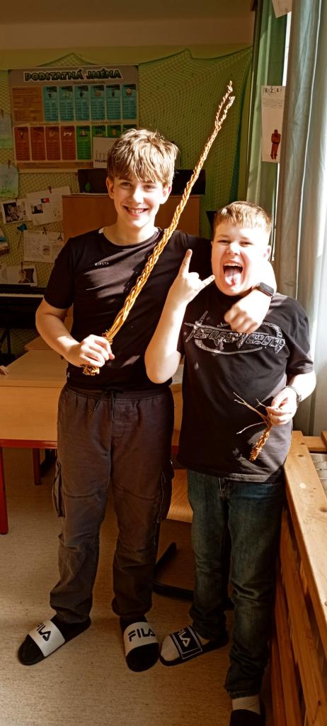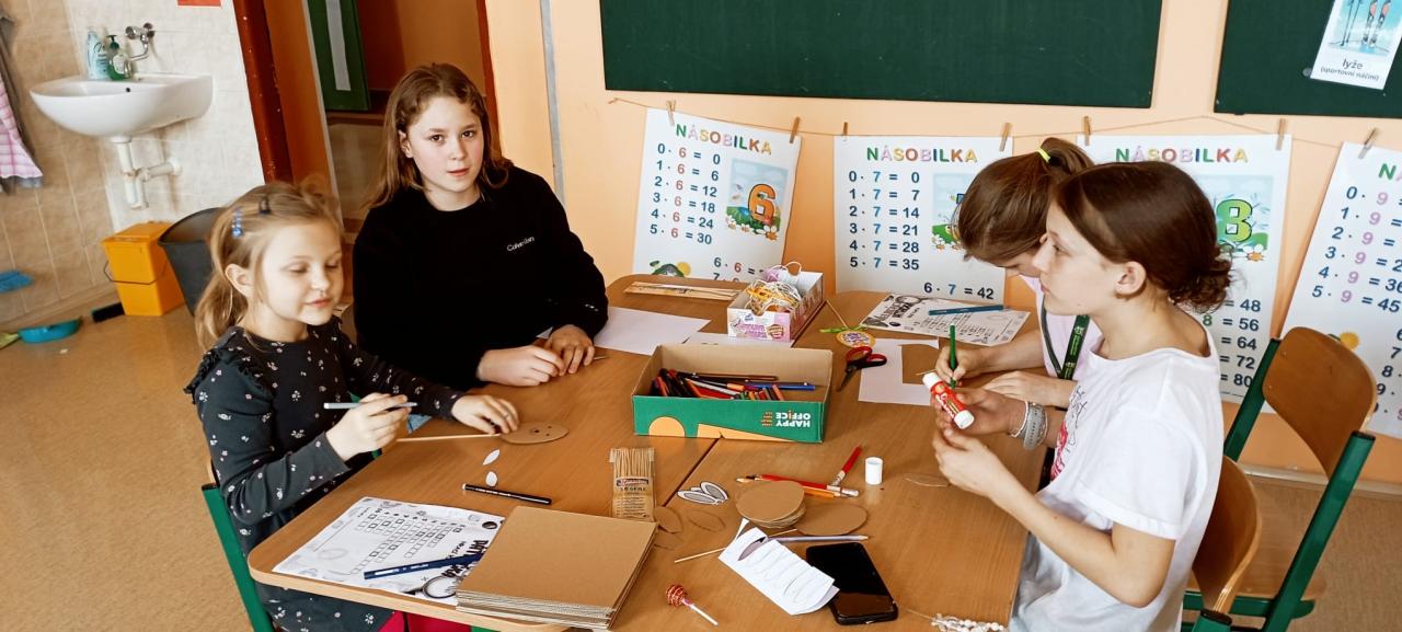 Perníčky, origami kuřátka, ozdůbky z tvrdnoucí hmoty, zápichy ve tvaru vajíček i zajíčků, přáníčka, zdobení vajíček voskem, proutěné dekorace či pletení pomlázky (pletly holky, pletli kluci, pletly paní učitelky...).