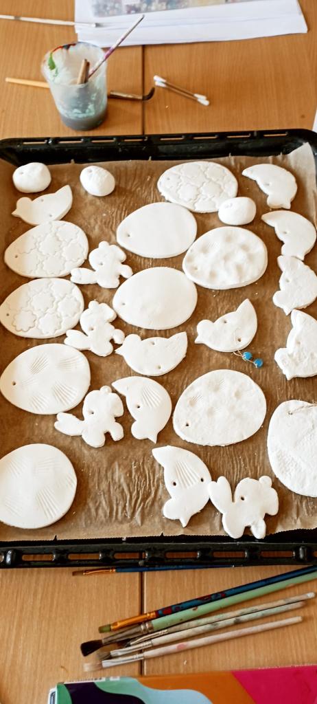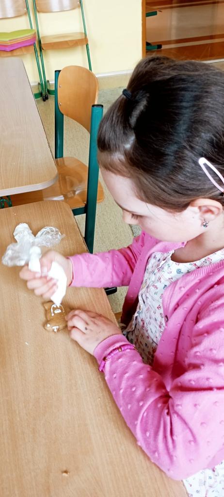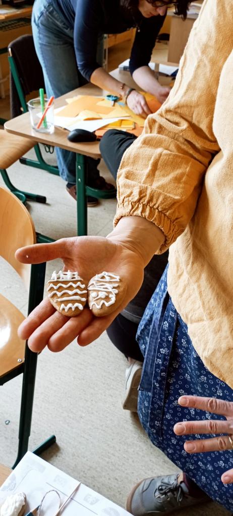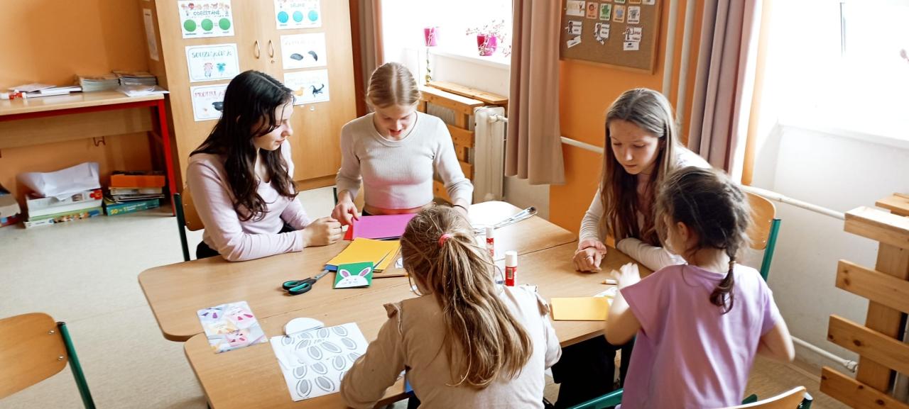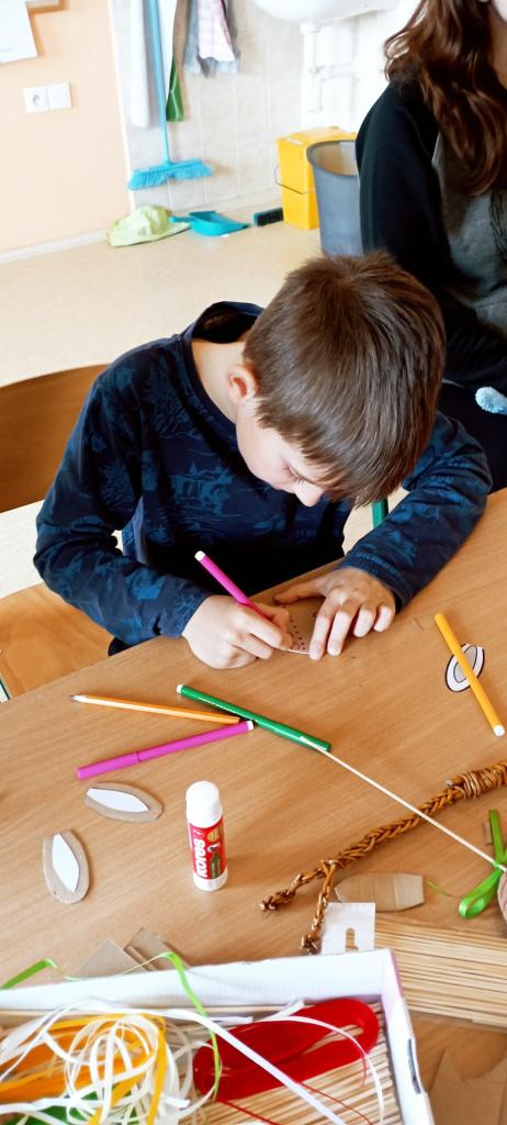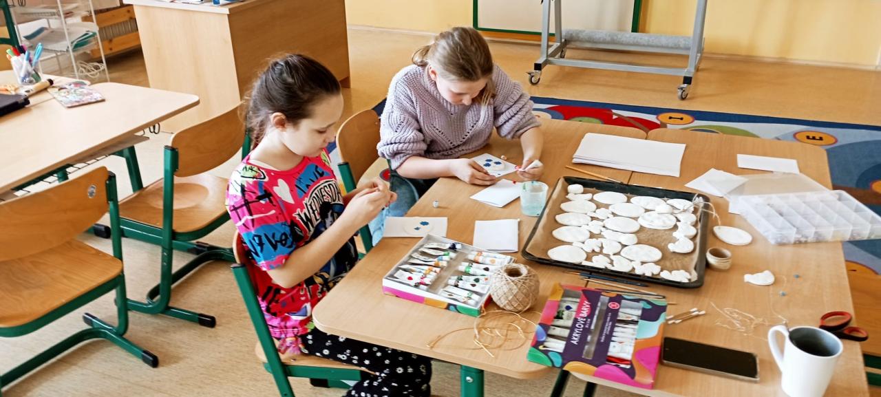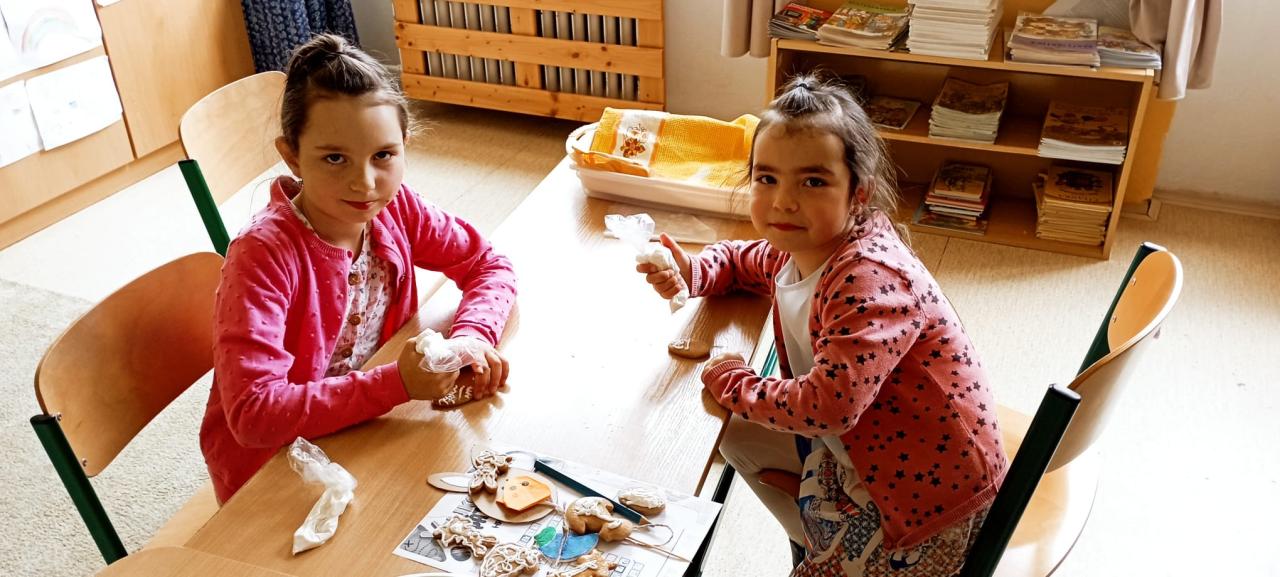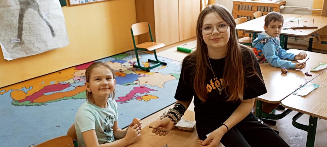 Perníčky, origami kuřátka, ozdůbky z tvrdnoucí hmoty, zápichy ve tvaru vajíček i zajíčků, přáníčka, zdobení vajíček voskem, proutěné dekorace či pletení pomlázky (pletly holky, pletli kluci, pletly paní učitelky...).